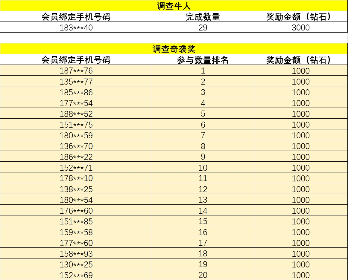 “调查牛人”活动第333周( 2025年9月15日-2025年9月21日)的统计结果已出炉,以下为具体获奖名单: