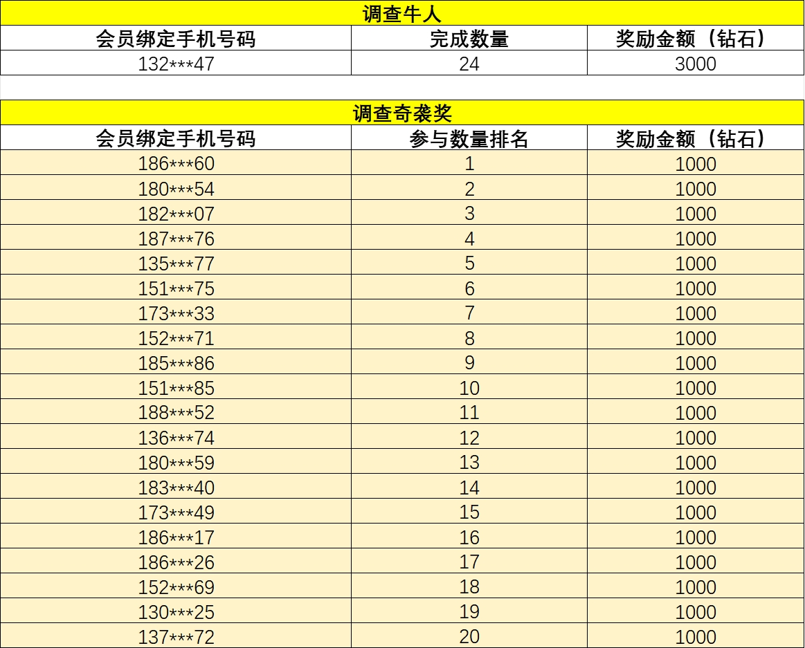 根据会员近三个月合格率筛选,若合格率未超过80%,说明已完成并获得奖励的调查里不规范、不达标的数据过多,将取消当周活动参加资格。(合格率将在每月月初进行更新)。