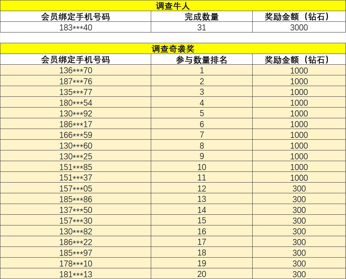 根据会员近三个月合格率筛选,若合格率未超过80%,说明已完成并获得奖励的调查里不规范、不达标的数据过多,将取消当周活动参加资格。(合格率将在每月月初进行更新)。